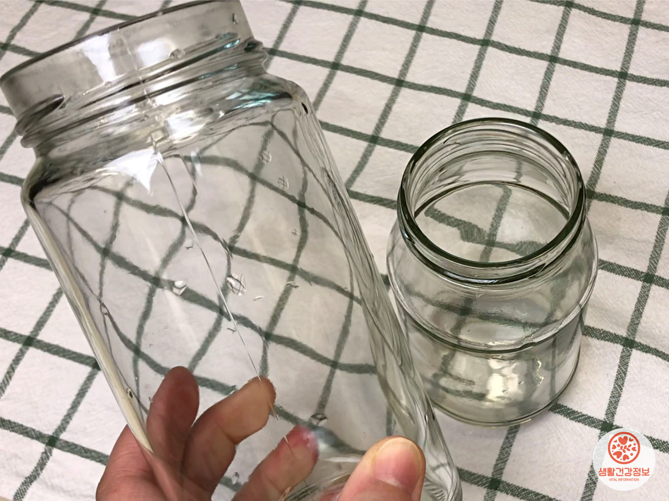 물을 끓여서 뜨거운 상태에서 유리병을 담그면